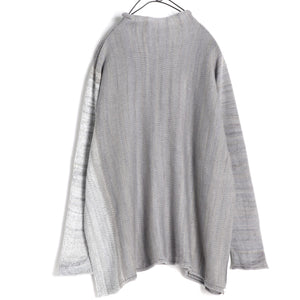 A relaxed boxy knit pullover sweater with drop shoulders, and long sleeves with ribbed cuffs. Featuring a unique design which allows the garment to be worn front-to-back. A perfect lightweight sweater for the transitional weather and for layering in the colder months.