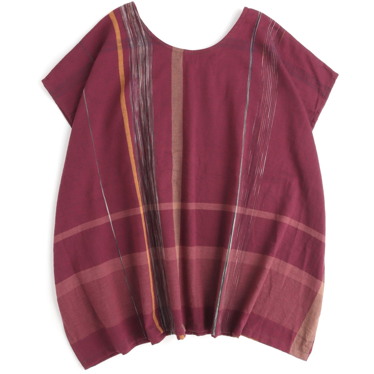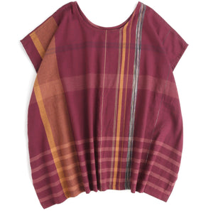 A relaxed round neck cap sleeve top made of 100% woven cotton. It has a beautiful drape and falls to the lower hip. The front and back are different and interchangeable. There is a slit at the side seam with a 4” rise and has a gradual flare at the hem.